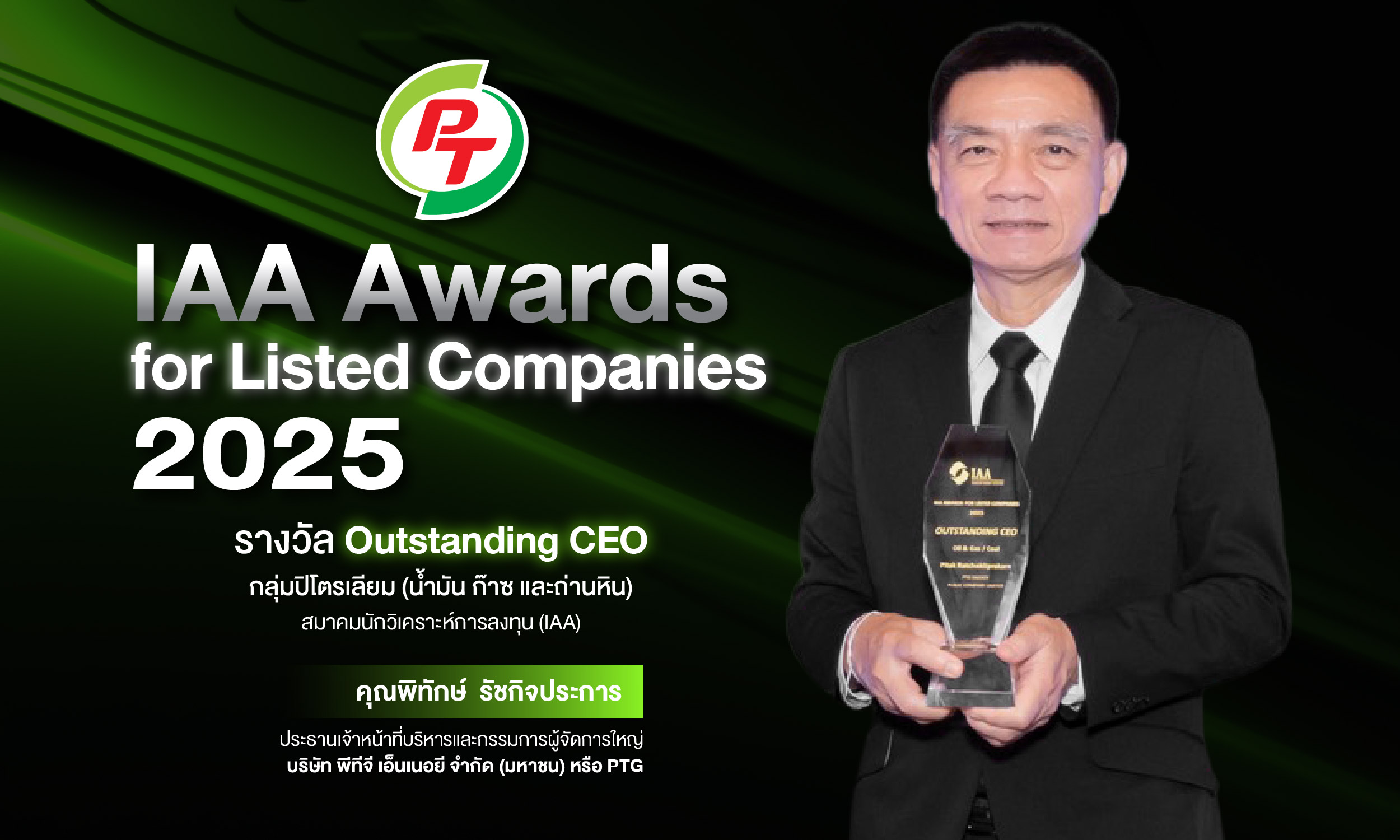 ผู้บริหาร PTG คว้ารางวัล “Outstanding CEO” จากเวที IAA Awards for Listed Companies 2025 สะท้อนความเชื่อมั่นนักวิเคราะห์-ผู้จัดการกองทุน