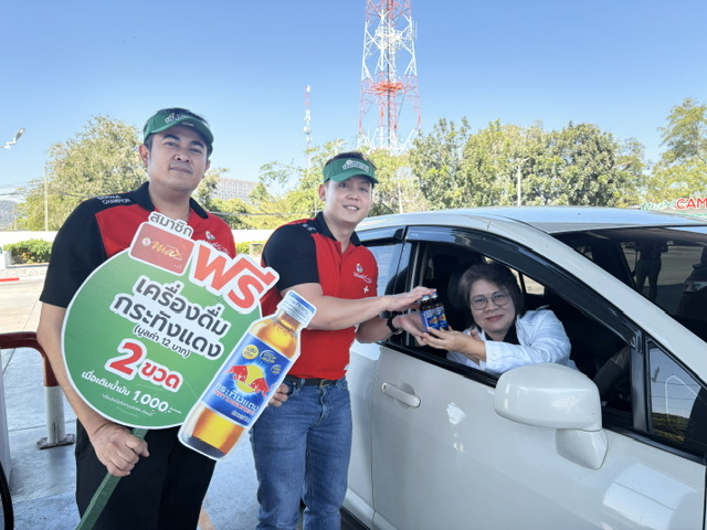 พีที ส่งพลังกลับบ้าน เติมน้ำมัน รับฟรี เครื่องดื่มกระทิงแดง