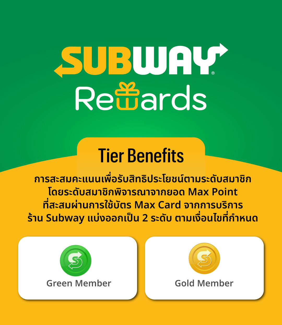 1.4 “SUBWAY Rewards” หมายถึง โปรแกรมสิทธิประโยชน์สำหรับสมาชิกบัตร Max Card ของร้านSubway