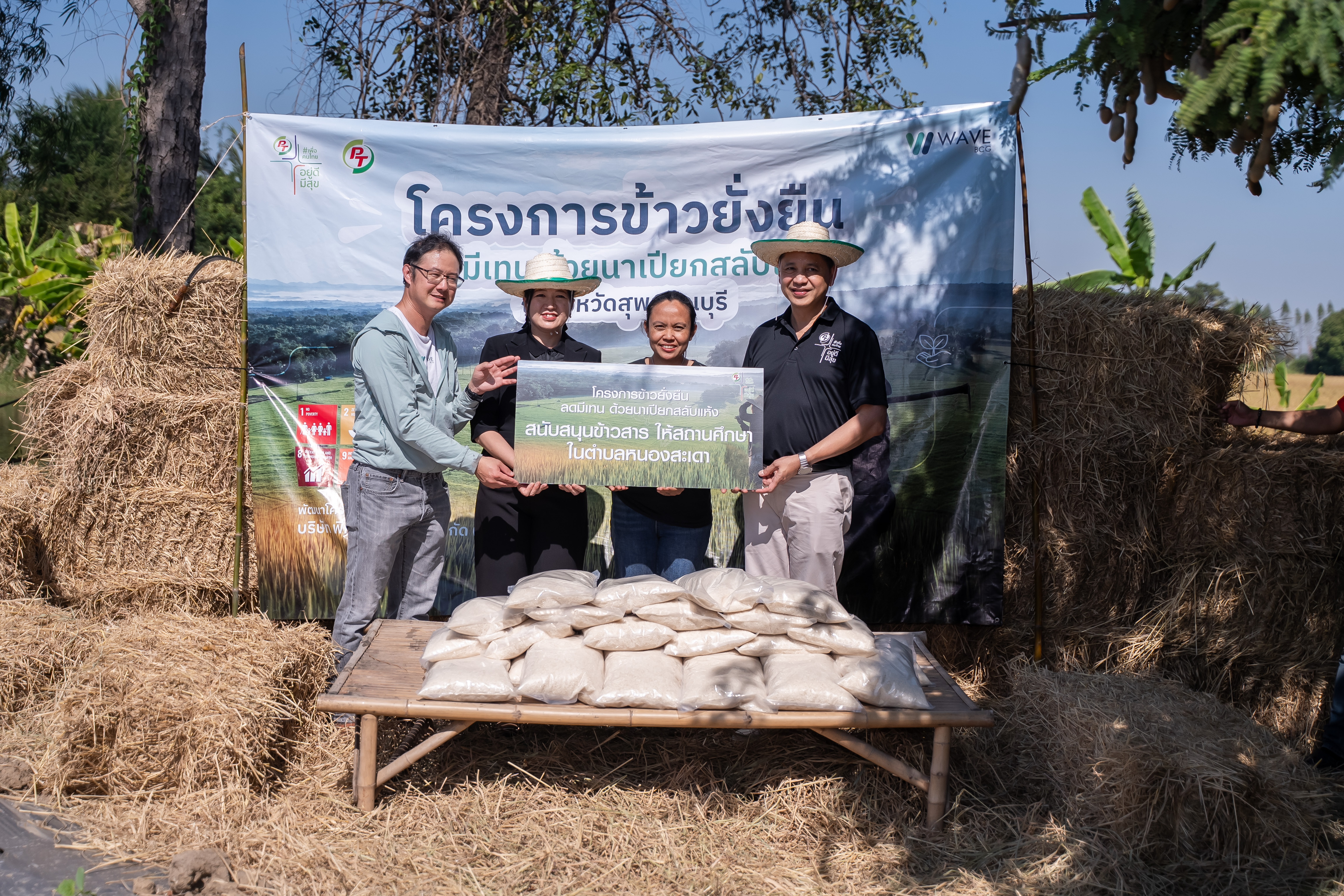 บริษัท พีทีจี เอ็นเนอยี จำกัด (มหาชน) ตระหนักถึงผลกระทบจากการเปลี่ยนแปลงสภาพภูมิอากาศที่เกิดขึ้นอย่างต่อเนื่อง และให้ความสำคัญกับการดำเนินธุรกิจอย่างมีความรับผิดชอบต่อสิ่งแวดล้อม ซึ่งมีความมุ่งมั่นสนับสนุนเป้าหมาย Net Zero ของประเทศไทย โดยได้ร่วมมือกับบริษัท เวฟ บีซีจี จำกัด (WAVE BCG) นำร่องโครงการ“ข้าวยั่งยืน ลดมีเทน ด้วยนาเปียกสลับแห้ง” ใช้เทคนิคการบริหารจัดการน้ำในนาข้าวแบบ Alternate Wetting and Drying (AWD) หรือการปล่อยให้ระดับน้ำ ขังและแห้งสลับกันเป็นช่วงเวลาอย่างเหมาะสม กระบวนการดังกล่าวเริ่มจากการบริหารจัดการระดับน้ำอย่างเป็นระบบ โดยขังน้ำในระยะเริ่มต้นเพื่อให้ต้นข้าวตั้งตัวได้อย่างมั่นคง แล้วปล่อยน้ำให้แห้งสลับเปียกเป็นรอบๆ เพื่อเปิดทางให้ดินได้รับออกซิเจนอย่างเต็มที่ ซึ่งช่วยกระตุ้นระบบรากให้แข็งแรงและดูดซึมแร่ธาตุได้ดียิ่งขึ้น หัวใจสำคัญของเทคนิคนี้คือการตัดวงจรการเกิดสภาวะไร้ออกซิเจนในชั้นดิน ซึ่งเป็นต้นตอของการผลิตก๊าซมีเทน ส่งผลให้สามารถลดการปล่อยก๊าซเรือนกระจกได้อย่างมีประสิทธิภาพ อีกทั้งการทำนาแบบเปียกสลับแห้งยังช่วยฟื้นฟูระบบนิเวศในแปลงนาให้สมดุล เอื้อต่อการเจริญเติบโตของจุลินทรีย์ที่มีประโยชน์ และเสริมสร้างภูมิต้านทานให้ต้นข้าวทนต่อสภาพอากาศที่แปรปรวน นับเป็นการยกระดับข้าวไทยสู่มาตรฐานการผลิตระดับโลกที่ยั่งยืน